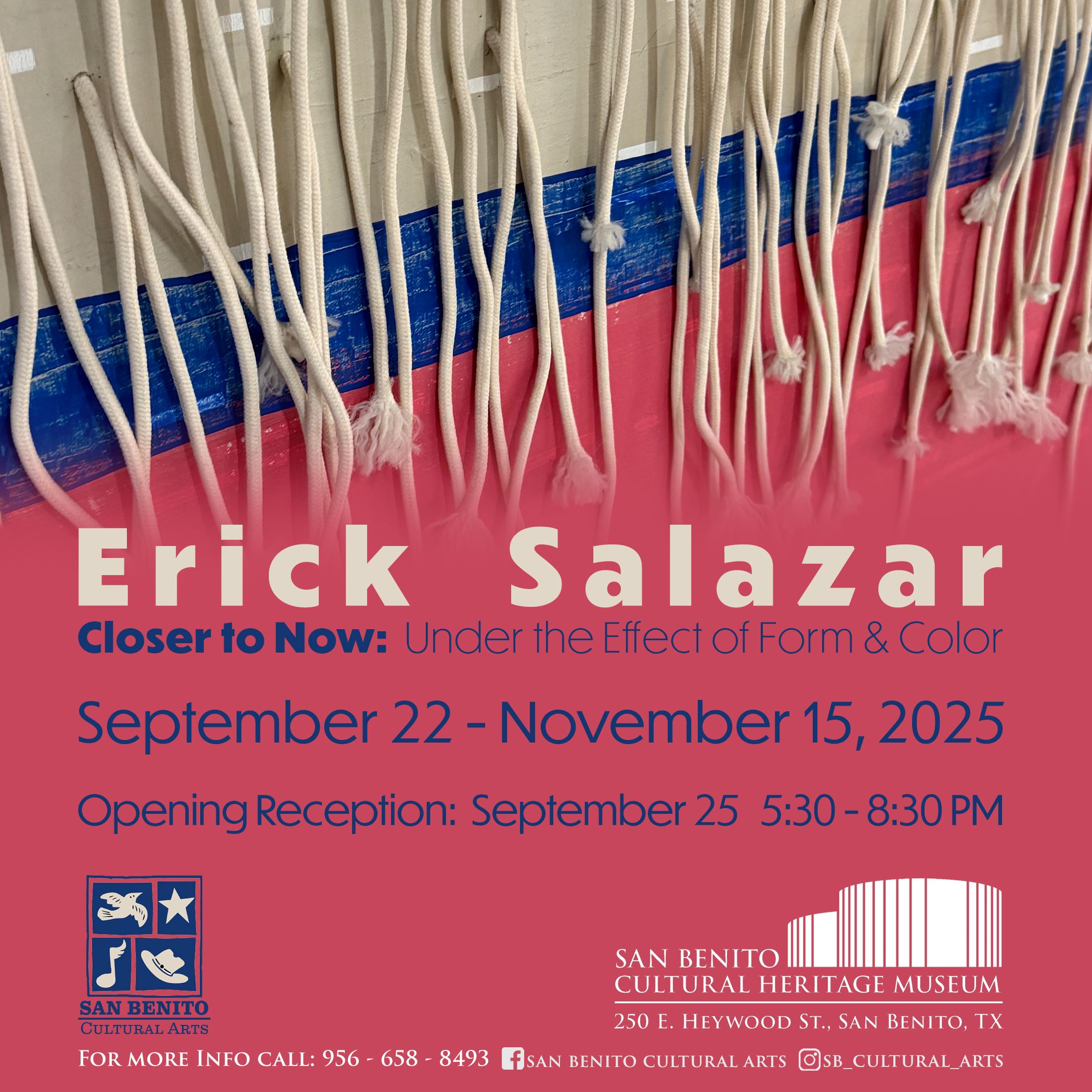 The City of San Benito’s Cultural Arts Department (CAD) is delighted to welcome Erick B. Salazar for his first solo-exhibition in a museum space. Closer to Now: Under the Effect of Form & Color will be on view at the San Benito Cultural Heritage Museum.