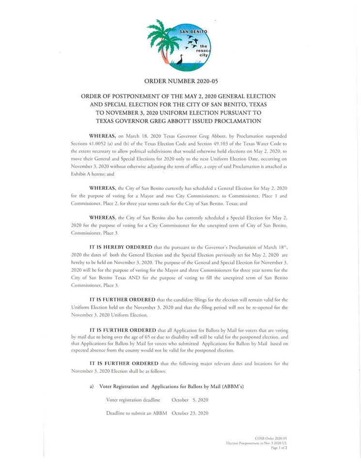 City of San Benito General Election Order 2026-001